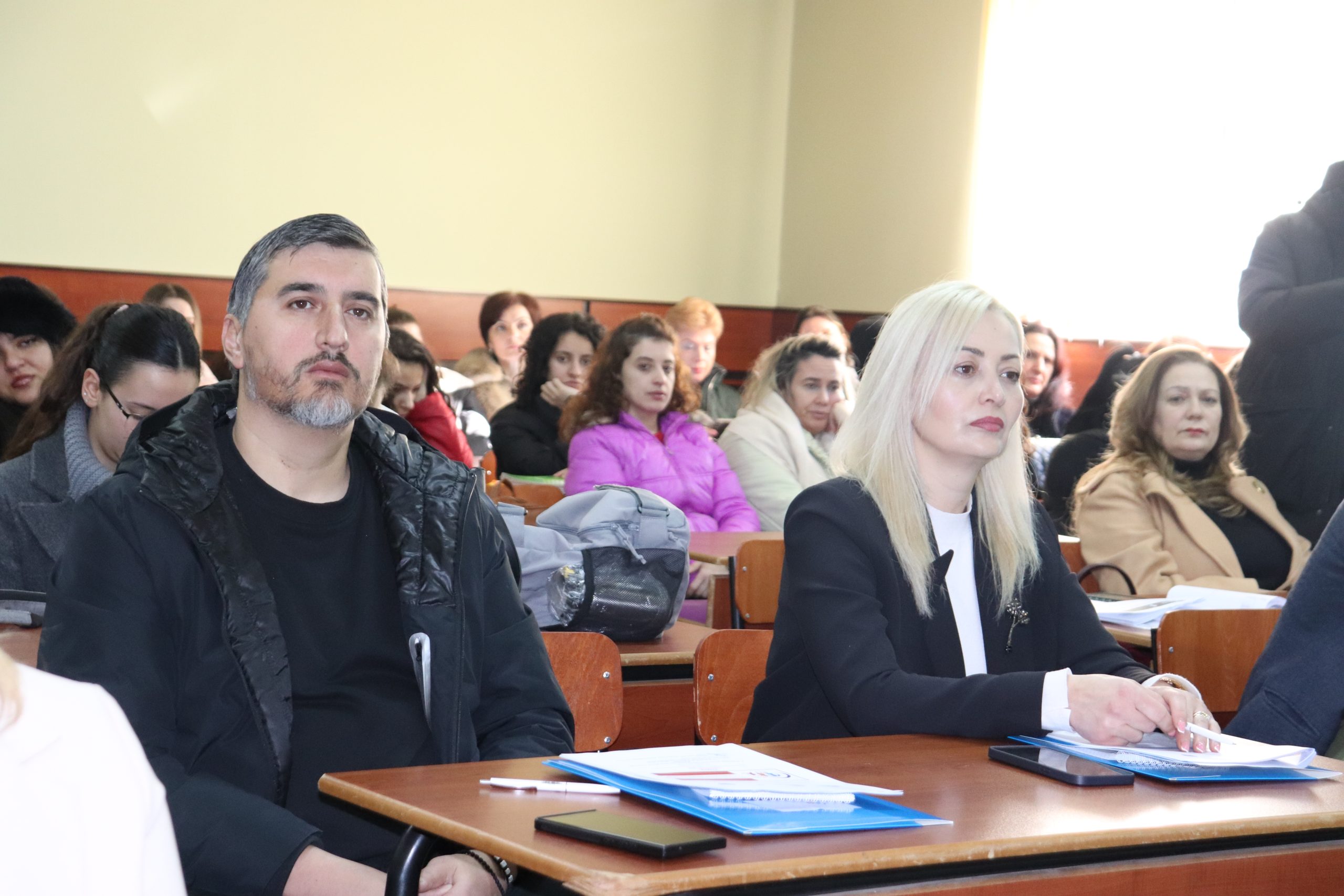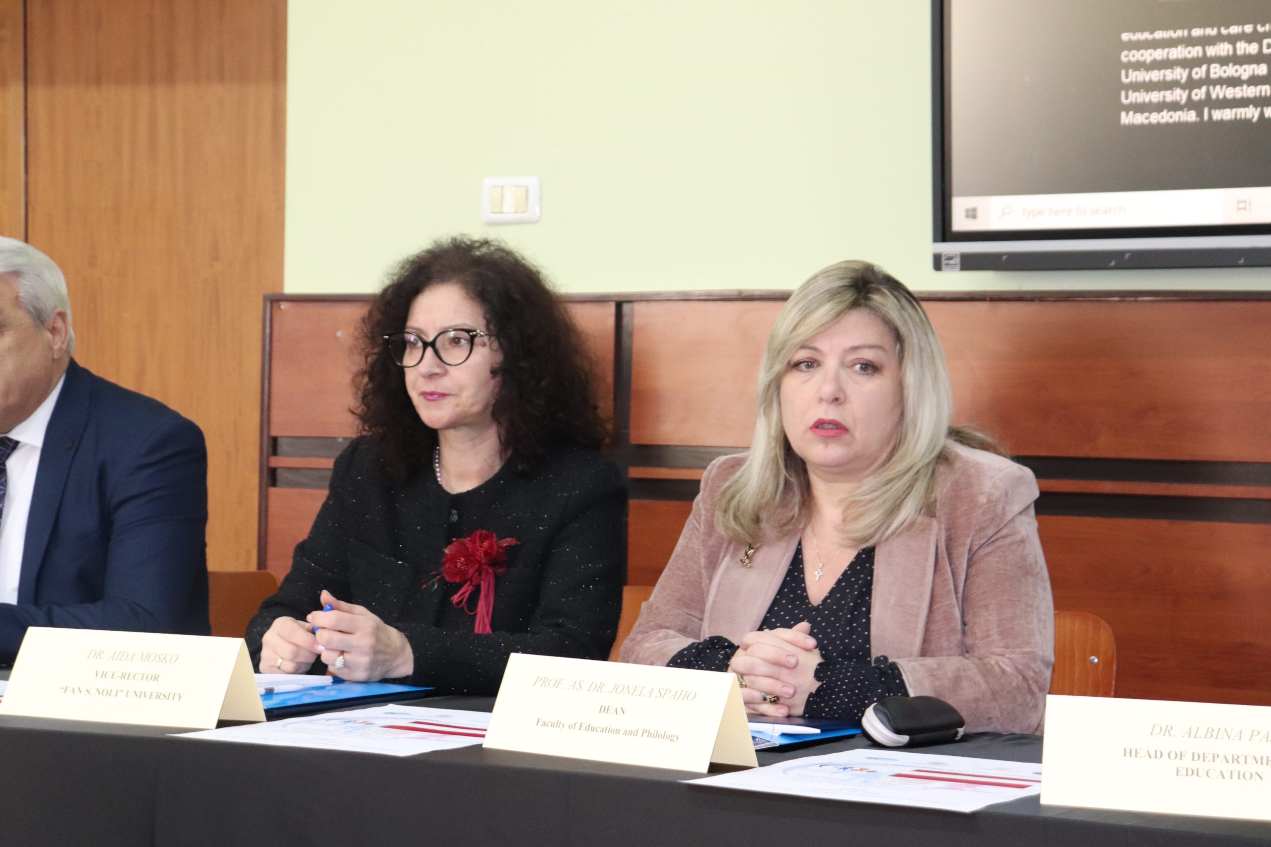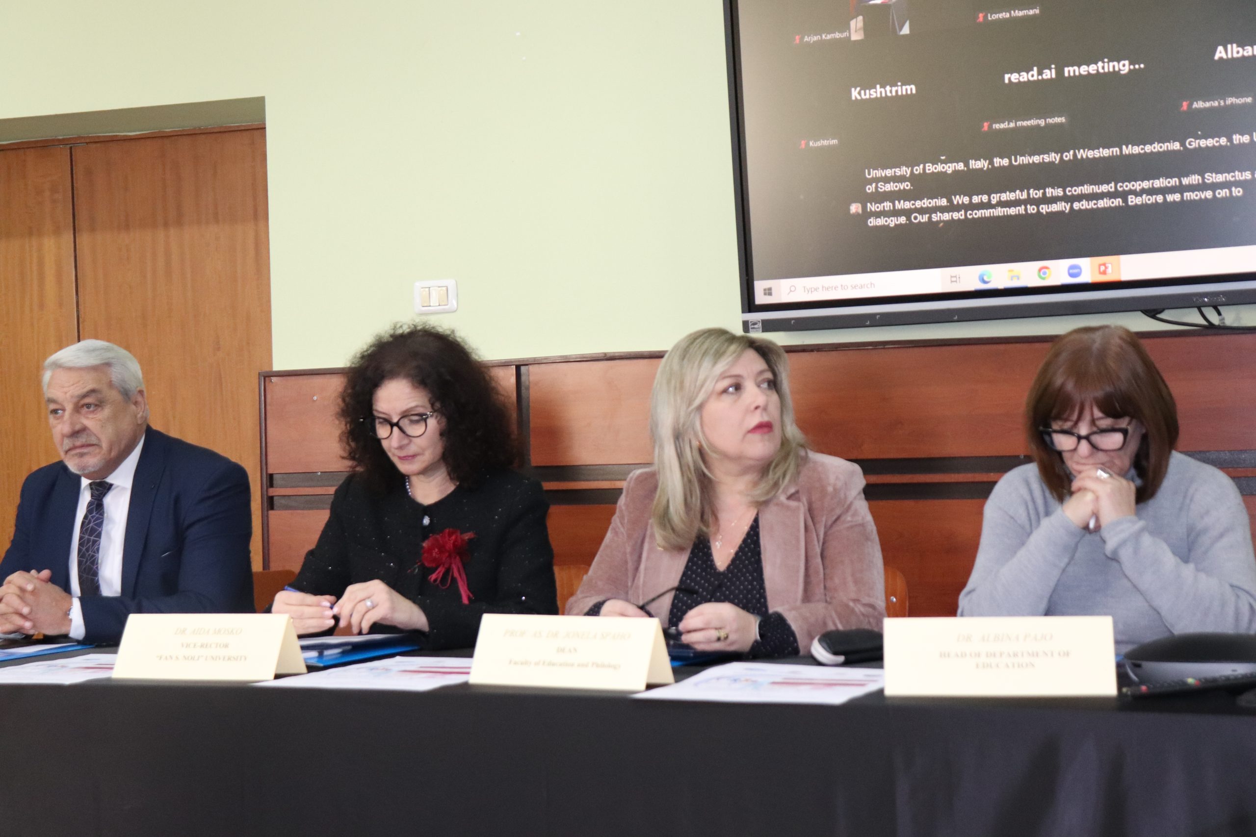 Takimin e përshëndetën zëvendësrektori për shkencën dhe projektet, dr. Aida Mosko, dekani i FEF, prof. as. dr. Jonela Spaho, përgjegjësi i departamentit të Edukimit, dr. Albina Pajo dhe online prof. dr. Kushtrim Ahmeti, dekan i Fakultetit të Filozofisë në Universitetin e Tetovës.