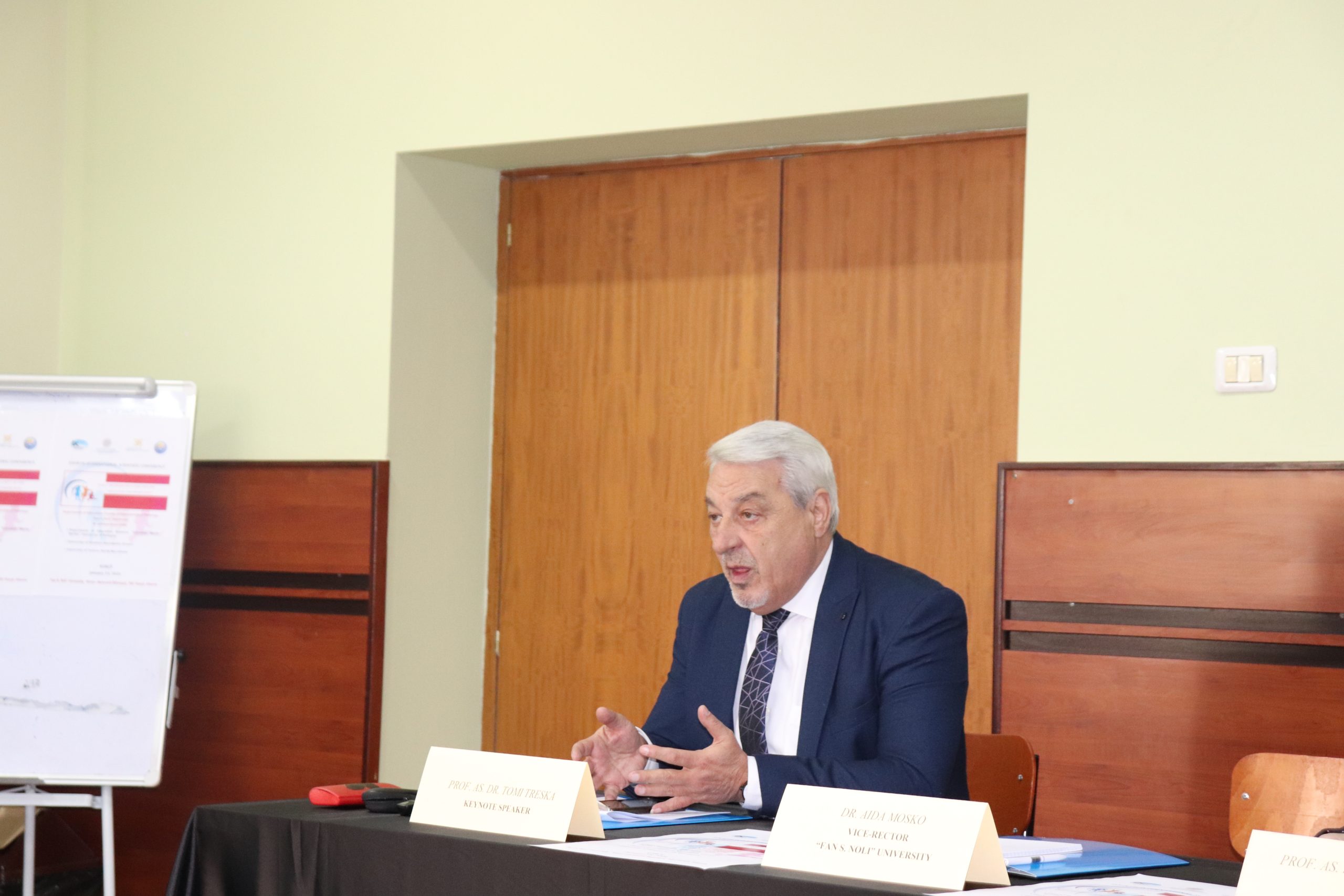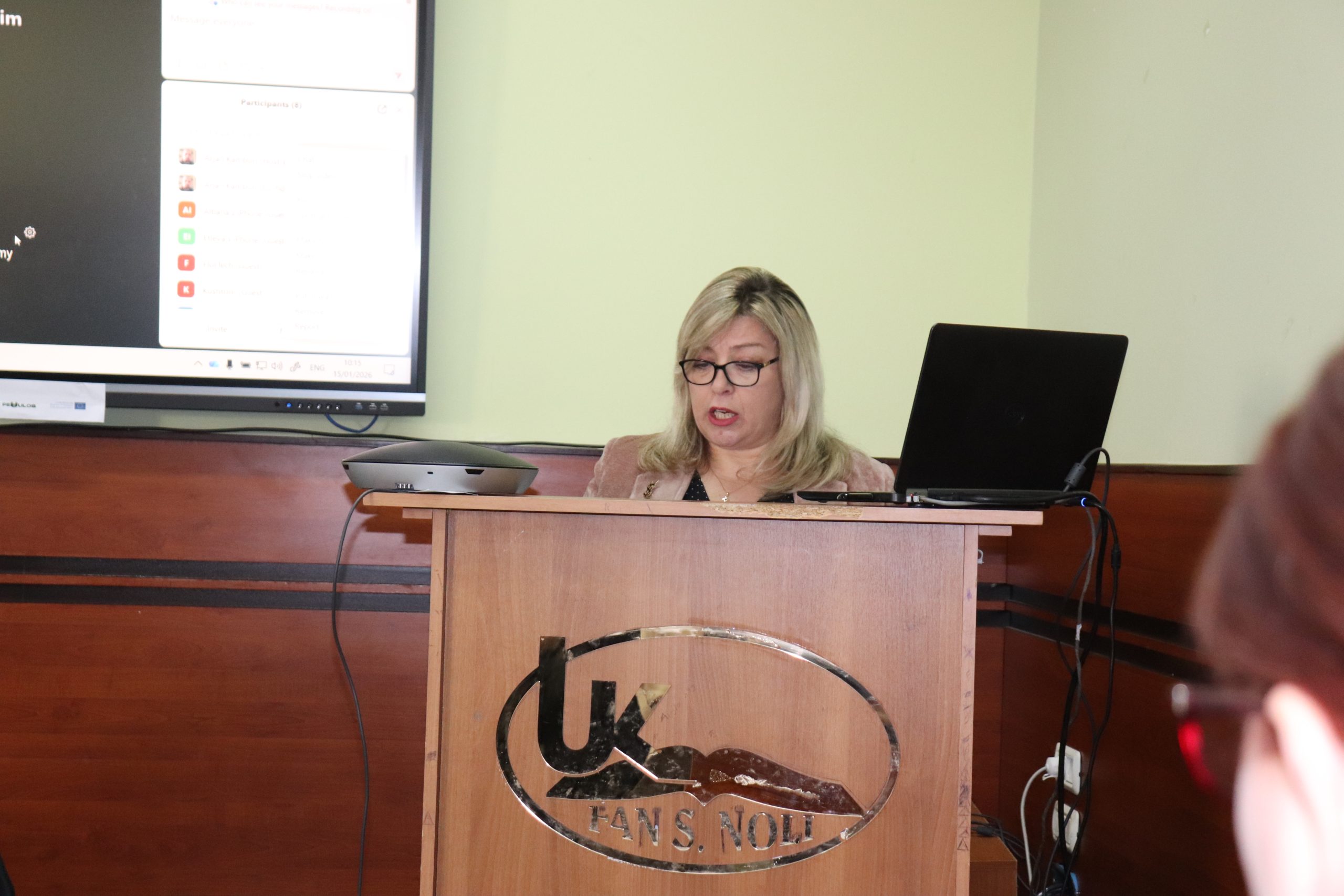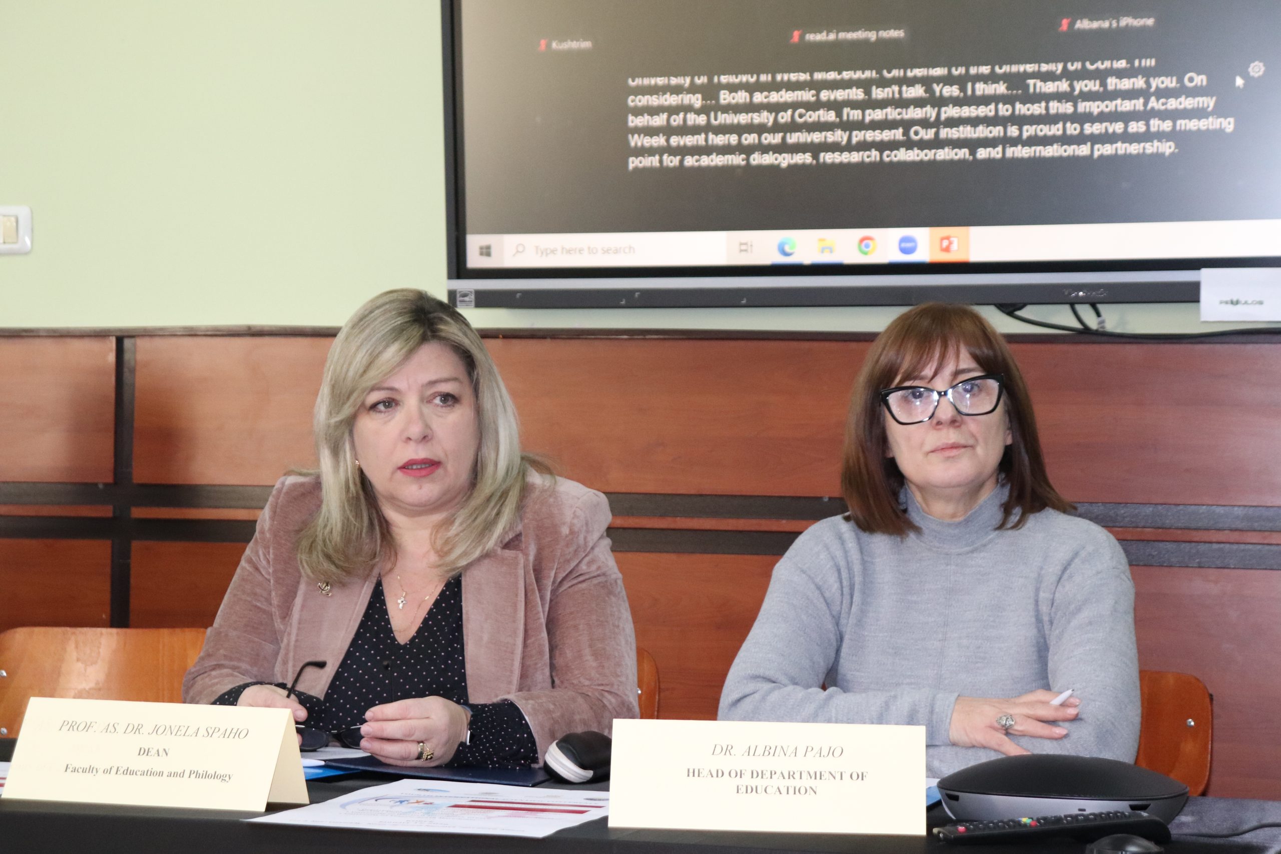 Takimin e përshëndetën zëvendësrektori për shkencën dhe projektet, dr. Aida Mosko, dekani i FEF, prof. as. dr. Jonela Spaho, përgjegjësi i departamentit të Edukimit, dr. Albina Pajo dhe online prof. dr. Kushtrim Ahmeti, dekan i Fakultetit të Filozofisë në Universitetin e Tetovës.