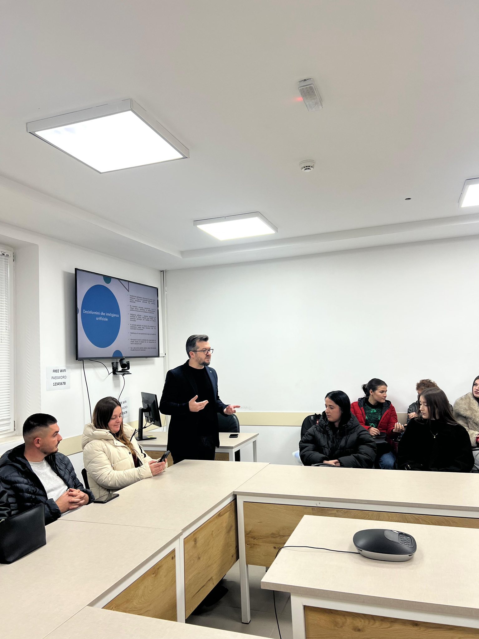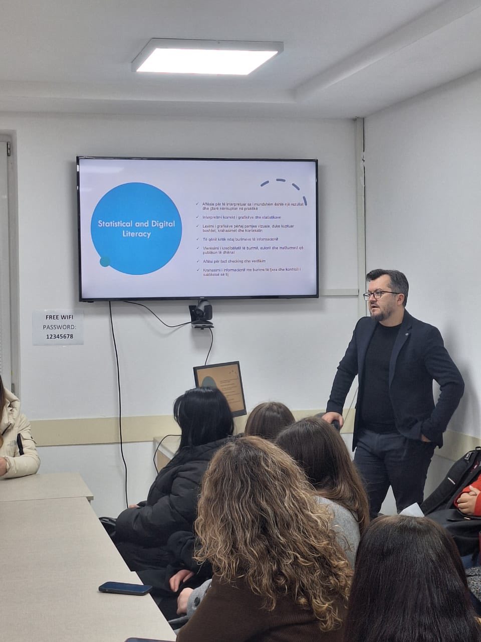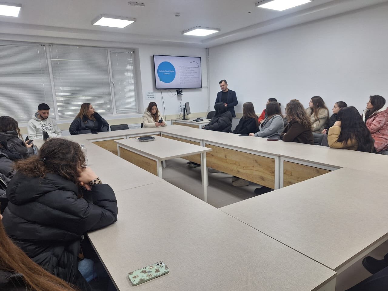 Në datën 3 prill 2026 u zhvillua një tryezë diskutimi me temë “Dezinformimi dhe Inteligjenca Artificiale në ekonomi” me studentë të Fakultetit të Ekonomisë, në Universitetin “Fan S. Noli”.