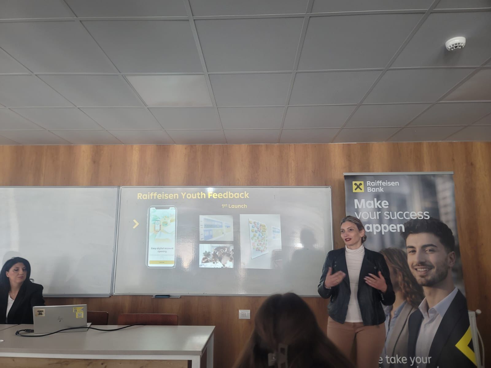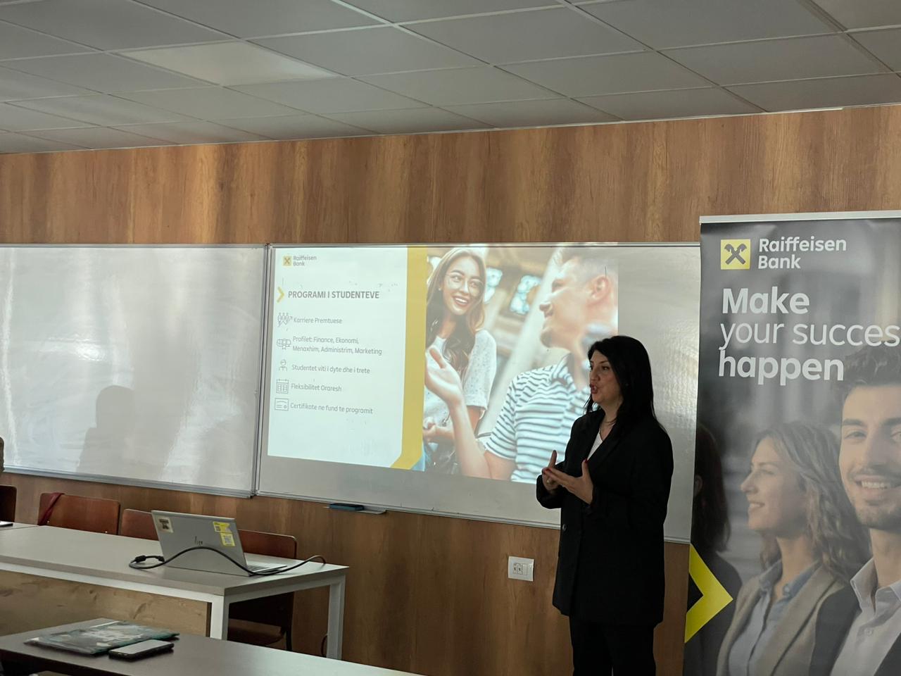 Stafi i Raiffeisen Bank ndau me të rinjtë informacion rreth mundësive për intershipe dhe punësim që kjo bankë ofron.
