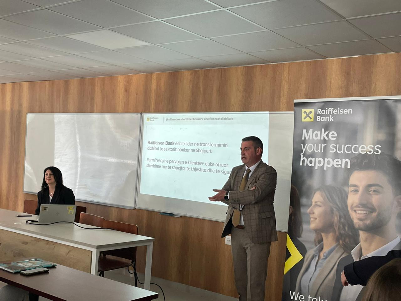 “ZHVILLIMI I BANKINGUT DIGJITAL DHE RËNDËSIA E EDUKIMI FINANCIAR PËR TË RINJTË”-LEKSION I HAPUR PËR STUDENTËT E FE, TË FTUAR STAF NGA RAIFFEISEN BANK